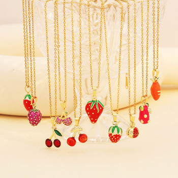 Collar de Cadena de Acero Inoxidable Chapado en Oro con Colgante de Cobre de Frutas de Fresa y Cereza Dulce a la Moda Joyería para Mujer